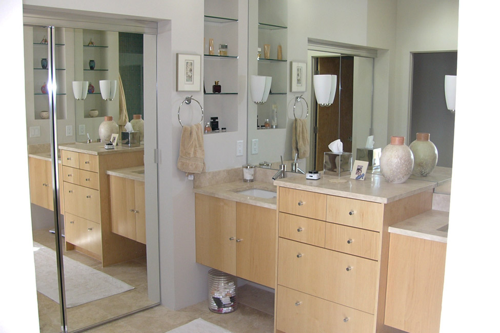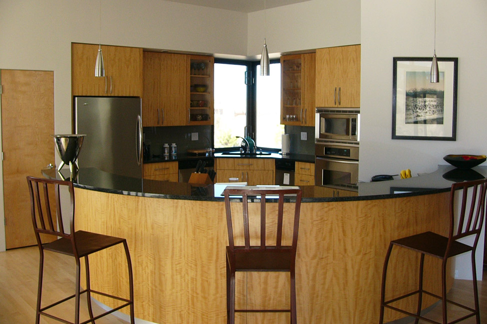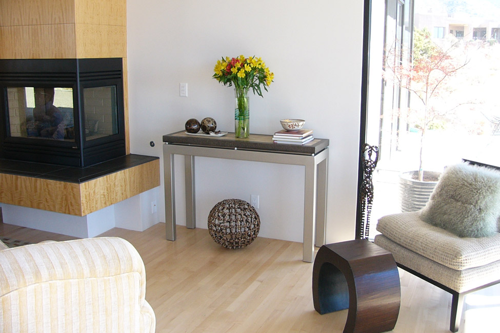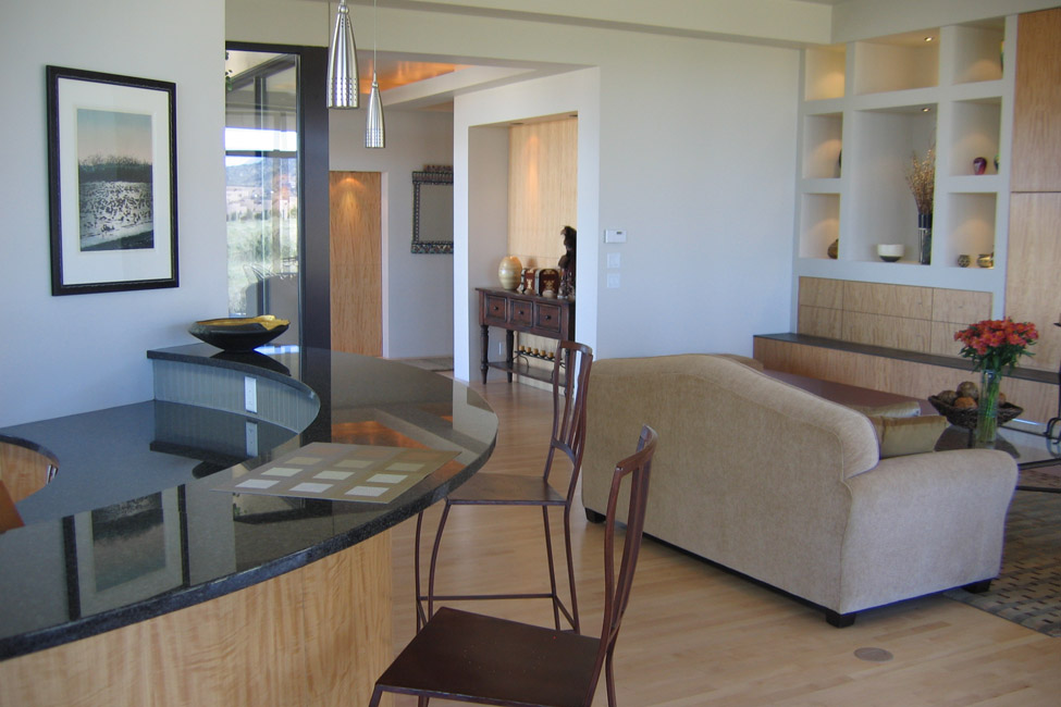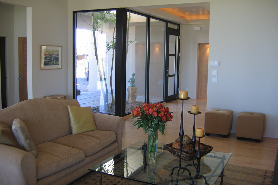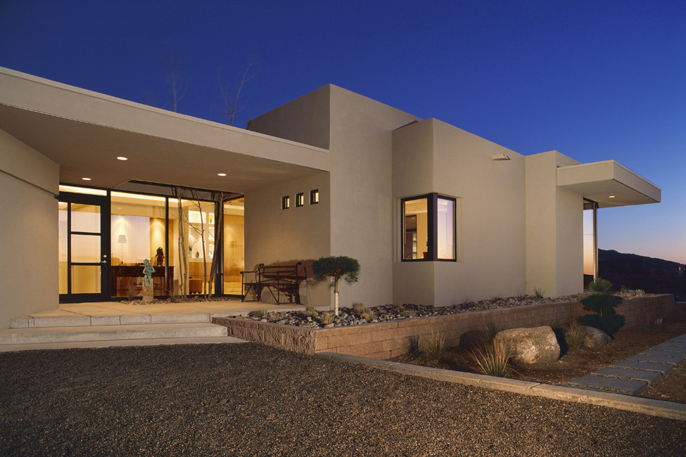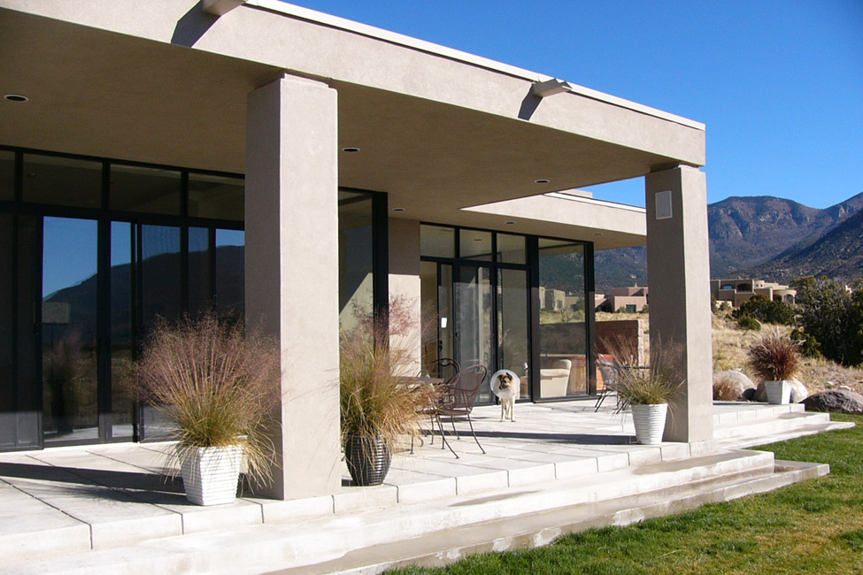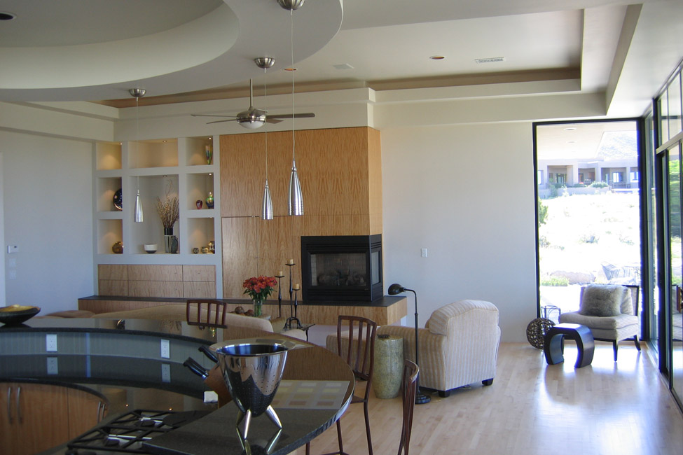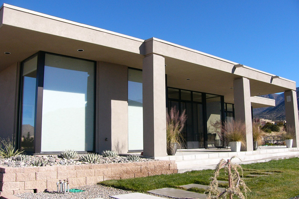 This home in the High Desert Subdivision of Albuquerque, New Mexico was designed and built for a client who purchased the lot the same time she hired John Kaltenbach. The home features a modern and Asian esthetic. Floor to ceiling glass with dramatic views of the Sandia Mountains and downtown Albuquerque are a major feature of this new home construction. This home was a Parade of Homes award winner.